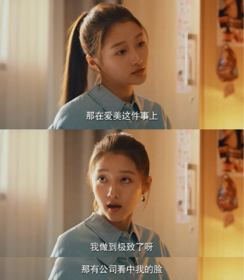 「那在愛美這件事上,我做到極致了呀!那有公司看中我的臉,很正常!那你挑公司,你不還看公司門面呢嗎?」