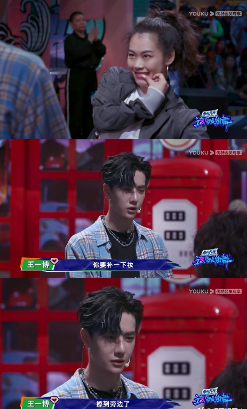 像是面對其中一個女選手的wink抹嘴殺,王一博隊長全程零反應,最後人家衝到了他面前擺出了抹嘴殺放電,把口紅都擦到嘴角去了,結果我們的耶啵隊長面對選手設計的擦口紅ending,居然耿直評價:「你要補一下妝,擦到旁邊了。」哈哈哈哈哈哈哈哈哈哈哈哈哈哈哈哈哈哈!