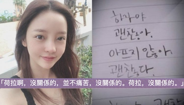 另外一段則是透露了她痛苦的心聲,對自己喊話:「荷拉啊,沒關係的,並不痛苦,沒關係的。荷拉,沒關係的。」