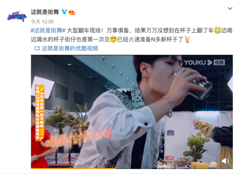這段節目公開之後,《這就是街舞》官方還發微博表示這是大型翻車現場,沒想到杯子會邊喝邊漏水!