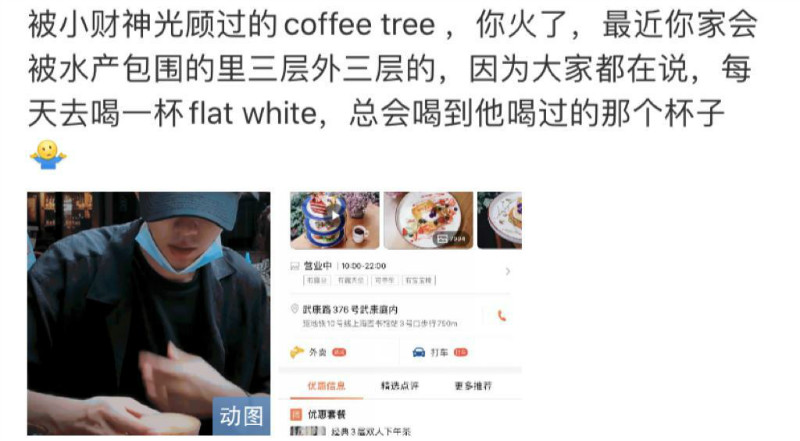 而第二款要get的同款,絕對是肖戰喝咖啡的地方,被扒出來是在上海武康路的coffee tree店,10號晚上就有粉絲冒雨到現場打卡!