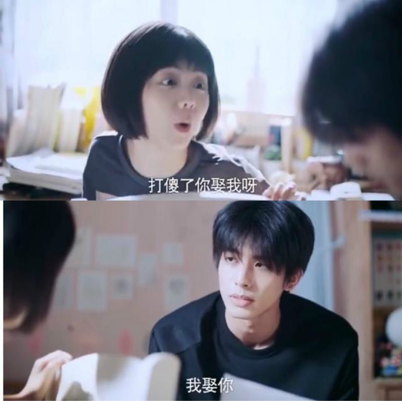 Ok,記住這一句「娶你,當我傻嗎!」後來大哥檢查尖尖做的考卷,發現答錯了又打了尖尖的腦袋,尖尖再一次抗議:「跟你說了不要打我腦袋,打傻了你娶我呀」,注意,尖尖的問題和上一次是一模一樣的,BUT來聽聽這次大哥怎麼回答?沒想到大哥居然回答說:「我娶你」,而且說了兩遍,第一遍是看著考卷假裝不經意說的。