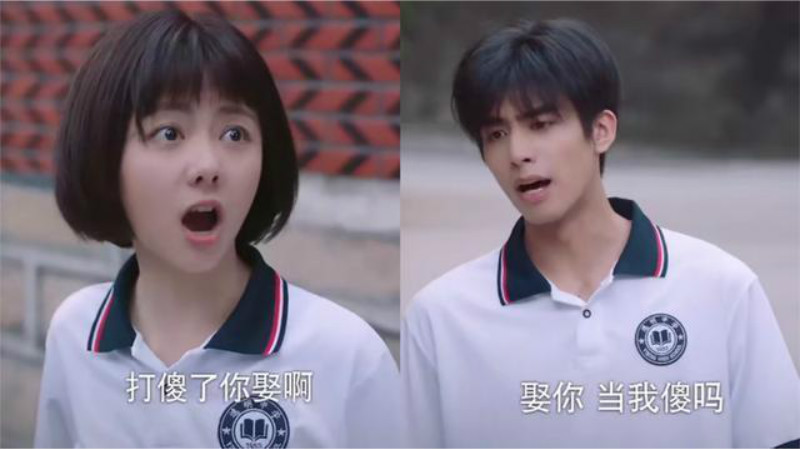 Ok,記住這一句「娶你,當我傻嗎!」後來大哥檢查尖尖做的考卷,發現答錯了又打了尖尖的腦袋,尖尖再一次抗議:「跟你說了不要打我腦袋,打傻了你娶我呀」,注意,尖尖的問題和上一次是一模一樣的,BUT來聽聽這次大哥怎麼回答?沒想到大哥居然回答說:「我娶你」,而且說了兩遍,第一遍是看著考卷假裝不經意說的。