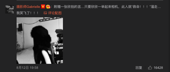 隨著這組照片上了熱搜,Gabrielle在13號也公開了自己為欣欣子拍攝的照片,嗚哇!果然很有feel~我們的欣欣子不但很會拍,被拍也很有味道呢!