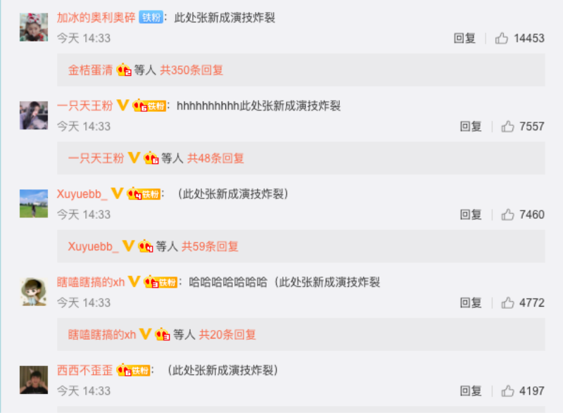 重點來啦!既然真主敢自己玩這個梗回應,粉絲怎麼會放過他呢?於是小編第一次看見熱評前10的回應這麼統一,一律打上了「此處張新成演技炸裂」!哈哈哈哈哈哈哈哈哈哈哈哈哈!