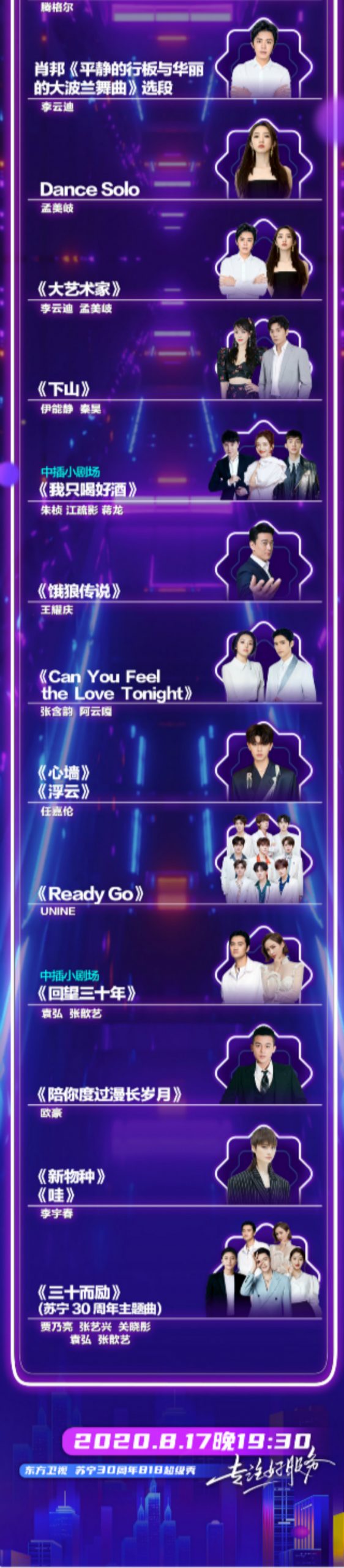 來啦來啦!即將在17號晚上7點半播出的《東方衛視蘇寧30週年818超級秀》的節目單出來啦!!!到底今晚有什麼精彩節目呢?重點立刻畫起來!!!