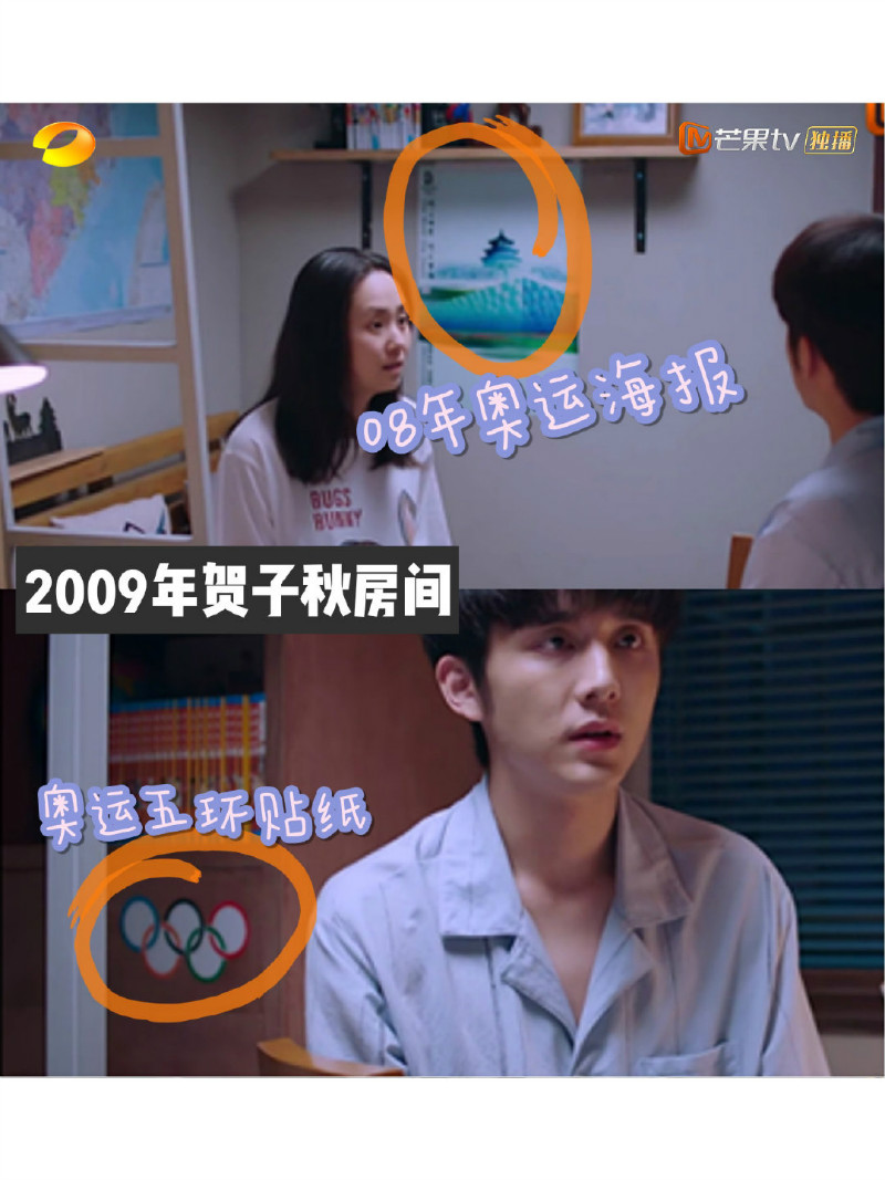 2009年的子秋房間裡,貼著的是2008年中國主辦奧運會的海報,甚至還有奧運的五環貼紙!畢竟對中國人來說,08年的奧運是大事啊!
