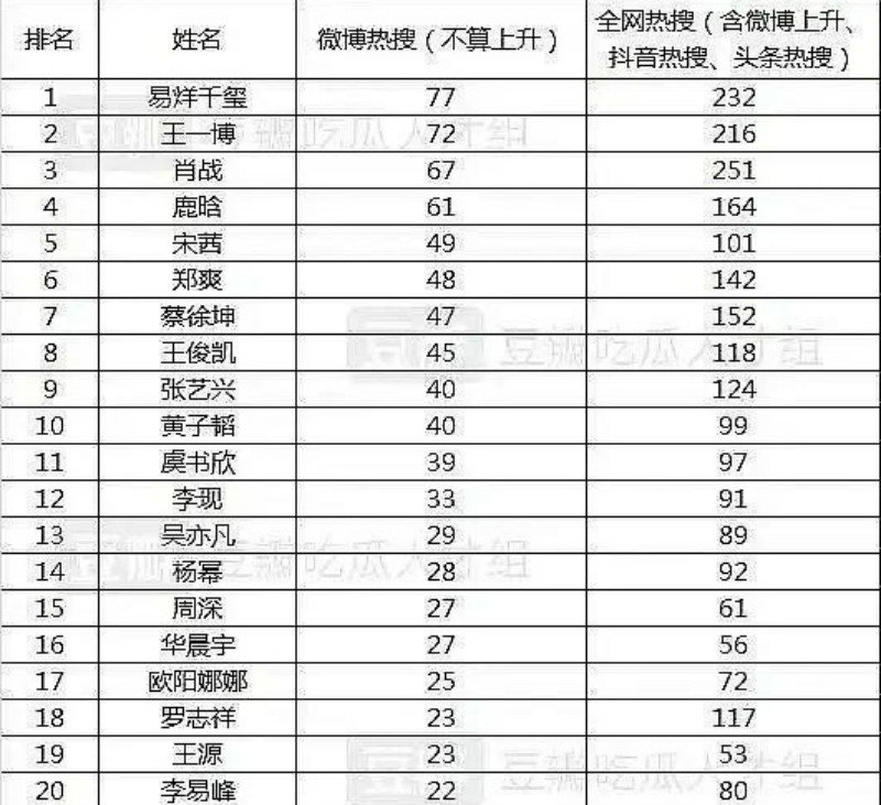來來來!又到了來看看誰是熱搜體質的時間啦!!!根據豆瓣小組的統計,整理了2020年上半年熱搜排行榜TOP 20名單!這次熱搜比較特別的地方,在於除了微博熱搜,還包括了一個全網熱搜,裡面包含了微博、抖音和頭條熱搜次數!所以一次來看看,住在熱搜上的藝人們有哪些吧!