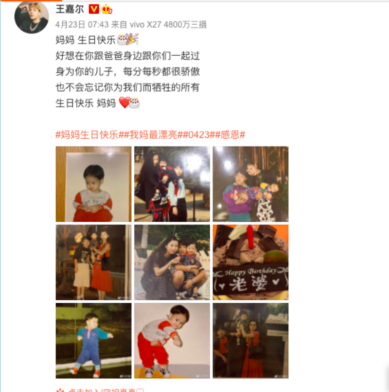 嘎嘎和父母的關係真的很親密,媽媽為他做的任何事他都會好好珍惜,這點也可以從他每年不缺席的媽媽生日微博看出!
