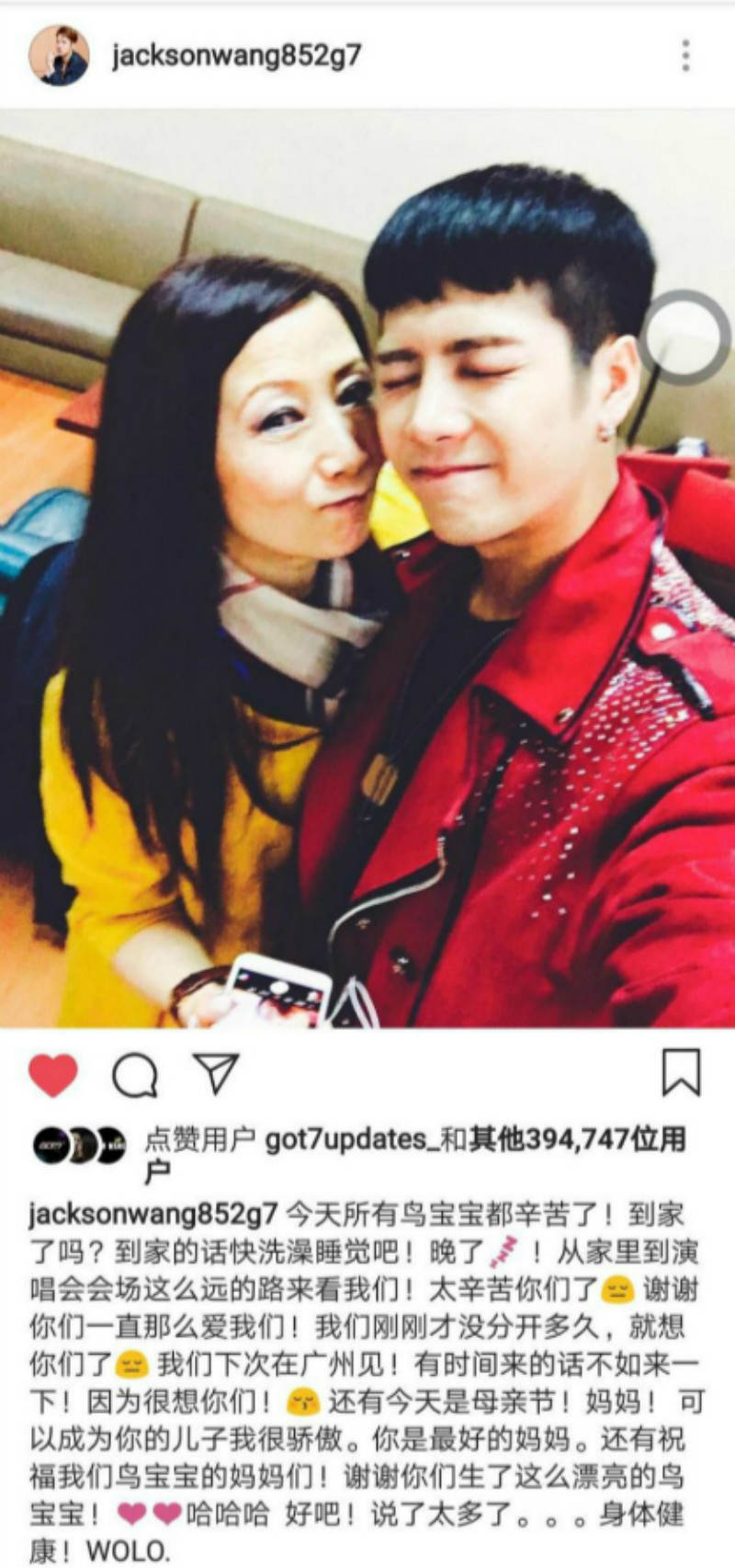 嗚嗚嗚!王嘉爾,一個長在很多追星女孩欣賞點上的男神!除了可可愛愛,嘎嘎最讓人感動的一個點,就是他真的是個難得一見的孝順孩子!