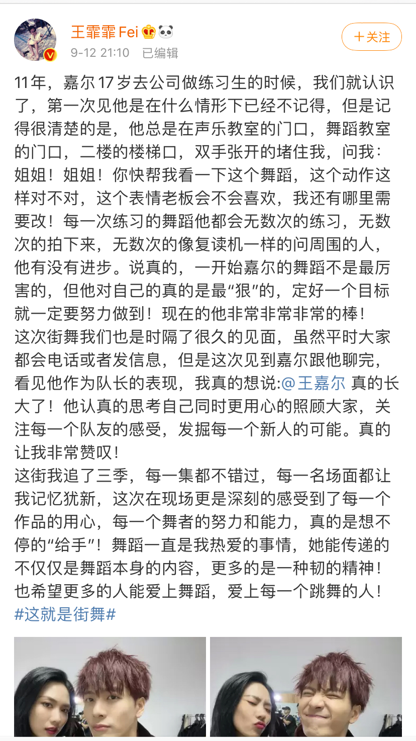這次街舞我們也是時隔了很久的見面,雖然平時大家都會電話或者發信息,但是這次見到嘉爾跟他聊完,看見他作為隊長的表現,我真的想說:王嘉爾真的長大了! 他認真的思考自己同時更用心的照顧大家,關注每一個隊友的感受,發掘每一個新人的可能。 真的讓我非常讚歎!