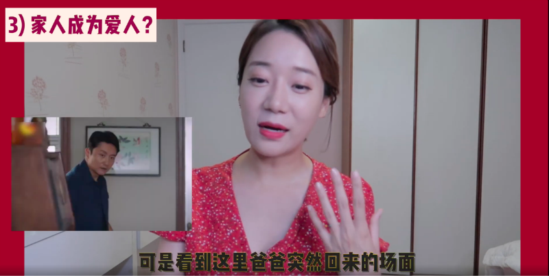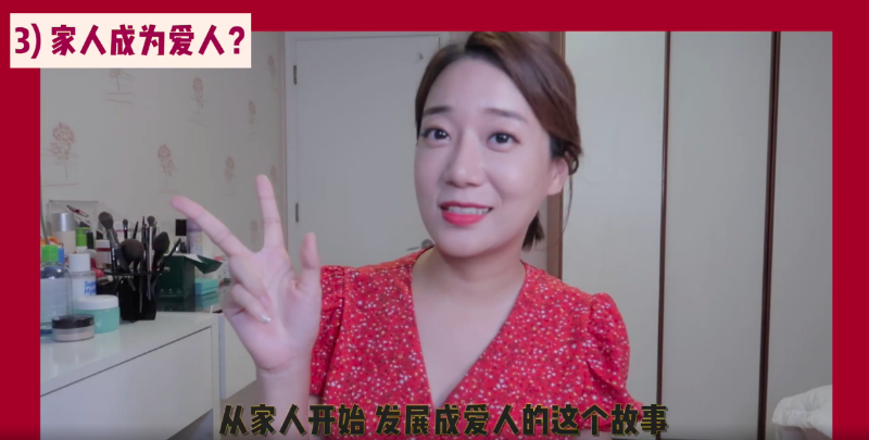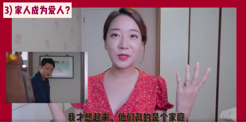 接著紅紅播放了一段霄尖CP的高甜片段,只見她全程姨母笑在看這兩個人談戀愛,最後說出讓自己驚訝的第三個點,那就是:「從家人開始發展成愛人的這個故事。」