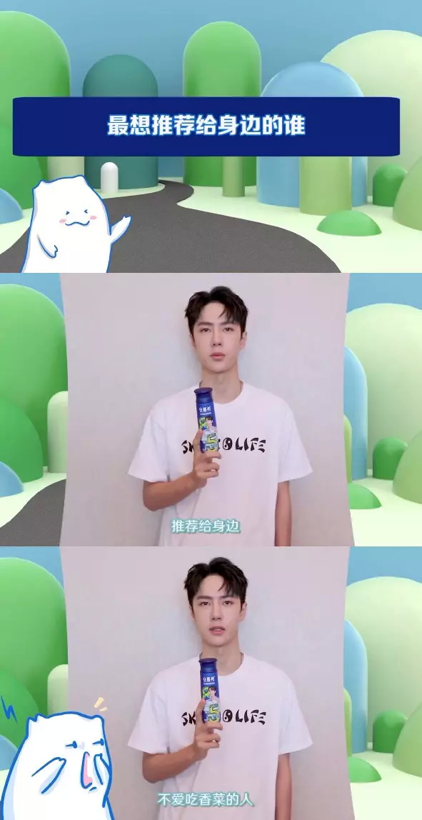 而當被問到想推薦這款口味的安慕希給誰時?王一博的答案是:「推薦給不愛吃香菜的人!」哈哈哈哈!算你狠!!!衝著王一寶這句話,小編立刻下訂單!