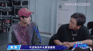 在《這!就是街舞3》中,當王嘉爾被操控,必須按照其他隊長說的話和選手交流時,王一博一個勁讓嘎嘎問Klash:「你吃香菜嗎?你為什麽不吃香菜?你到底吃不吃香菜?你如果不吃香菜我永遠不會再見你!」搞到黃渤都忍不住問王一博,為什麼要說香菜?答案?「因為我最愛吃香菜啊!」
