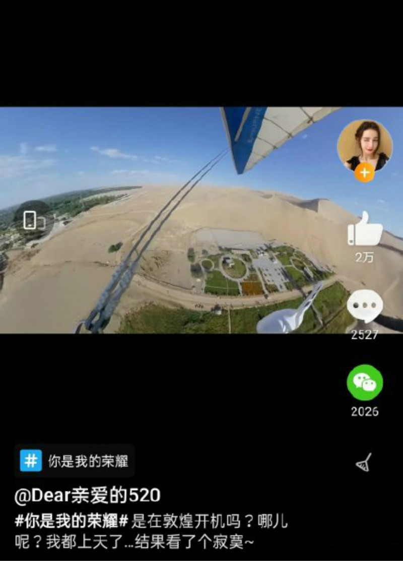 哈哈哈哈哈哈哈哈!果然玩還是正主會玩啊!表示網傳楊洋、迪麗熱巴主演的《你是我的榮耀》20號已經在中國敦煌開機!正式官宣!楊洋!迪麗熱巴!《你是我的榮耀》真的來啦!!航空設計師的電競大神遇上當紅女星!