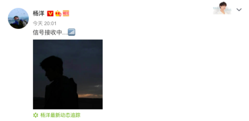 正當大家紛紛懷疑究竟網傳的開機消息是否屬實時,23號晚上男主楊洋,也就是飾演男主于途的大神發文啦!只有一張剪影照,配文:「信號接收中…」