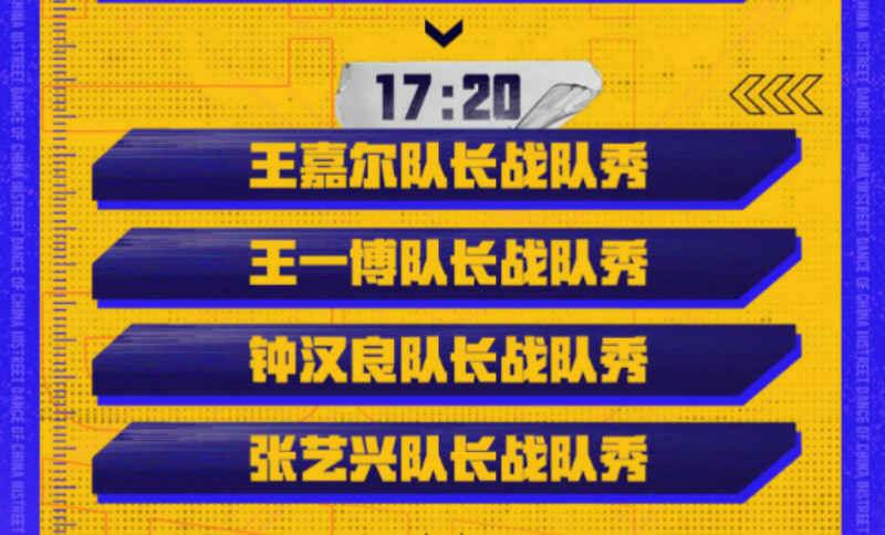 由於這一季採用直播方式,而且是長達8個小時的節目!不少人都在蹲的節目表也終於終於公開啦!!先來看看~沒錯,這一季隊長的隊長大秀落在了5點20分,也就是在百人開場齊舞之後!先是王嘉爾、王一博、鐘漢良,最後是張藝興隊長大秀!對於這樣的安排,不少粉絲提出異議,因為這個時間…真的好像不是很適合啊!