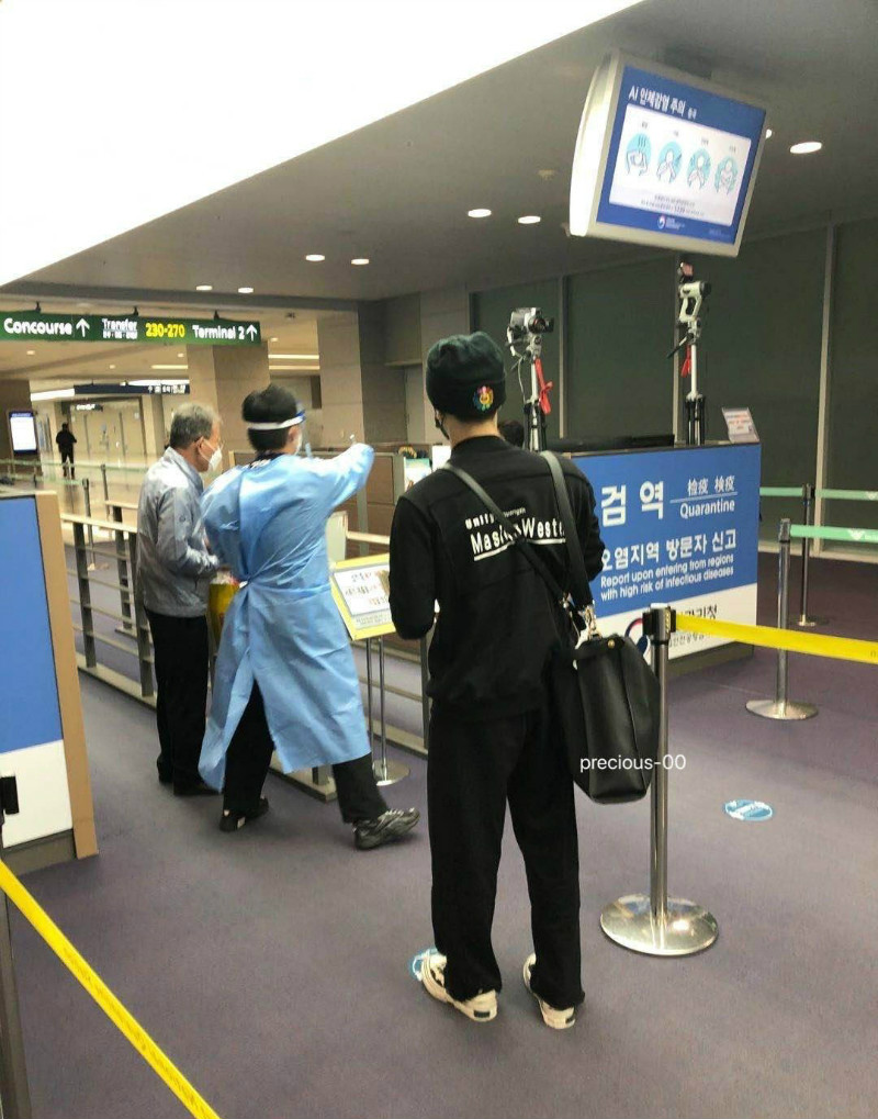 而韓國方面的前線粉絲,也上傳了嘎嘎抵達韓國機場的路透~