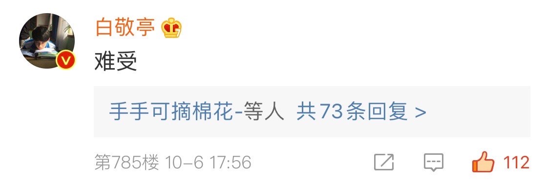But,有好玩的怎麼可能少得了白敬亭!小白居然也下場評論啦!不過只寫了兩個字:「難受」哈哈哈哈哈哈哈哈哈哈哈!完美套用了記者當時說的話,因為嘎嘎也不記得和自己的組合啦!