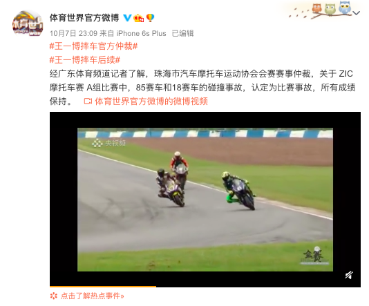 直到晚上有媒體發佈了官方仲裁結果,判定85賽車和18賽車的碰撞事故,被認定為比賽事故,所有成績保持。