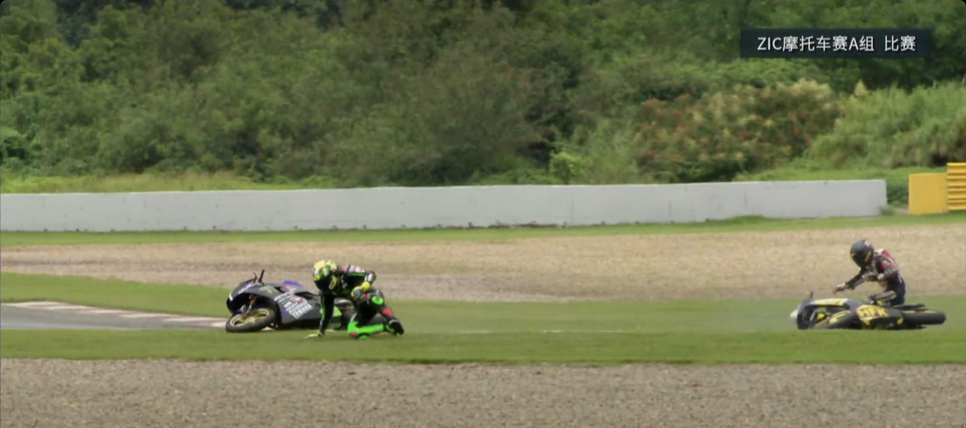 在7號下午的正賽中,原本有機會坐亞望冠的王一博,在最後半圈的時候,由于車手胡通明想要彎道超車,但進彎速度太快,輪胎失去抓地力,導致摔車,同時還帶倒了旁邊的王一博,視頻中王一博被帶倒之後連續翻滾了好幾圈才停下,可見車速很快!超可惜!王一博珠海ZIC摩托車正賽!原排名第二最後一圈被撞翻車!!!看視頻!