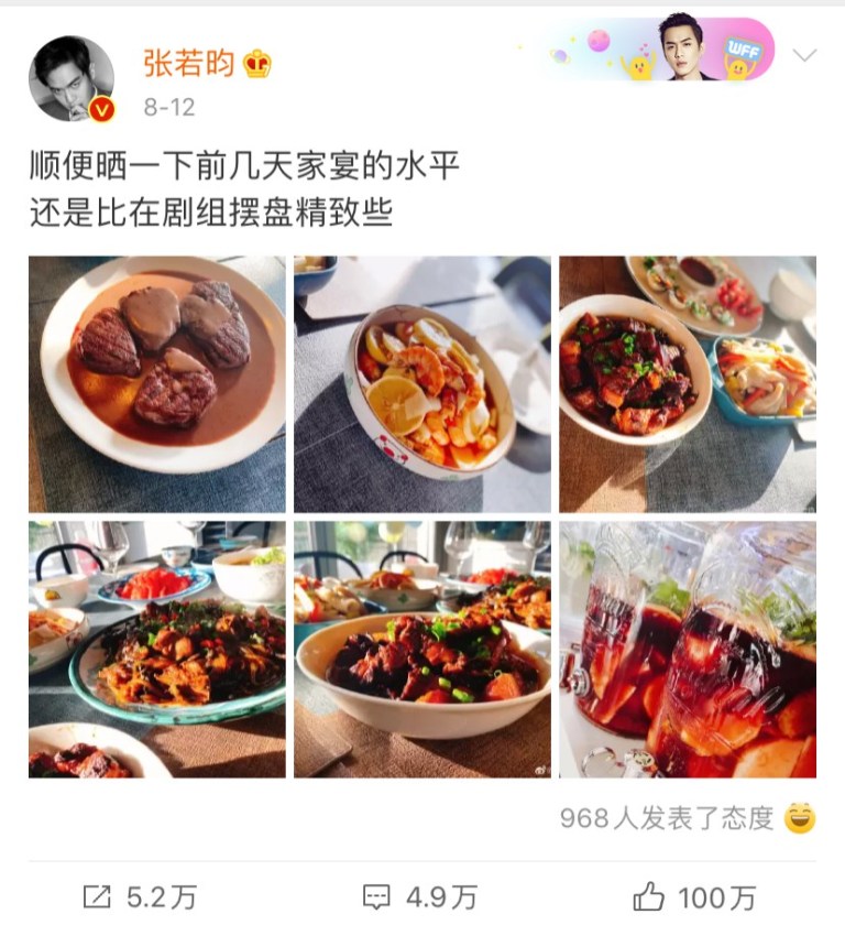顆顆顆~果然…真的不能和藝人比減肥啊!表示自從唐藝昕懷孕之後,張若昀的微博基本上就變成了美食博客,天天看他忙著在微博上曬各種自己做的美食,而且頓頓飯都是肉多油厚!