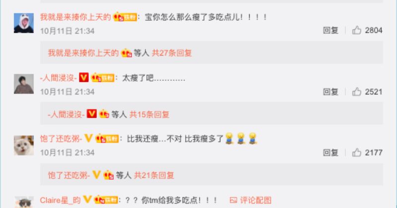 更多的都是心疼怎麼張若昀這麼瘦了,紛紛表示:「寶你怎麽那麽瘦了多吃點兒!!!!」、「太瘦了吧…………」、「比我還瘦…不對 比我瘦多了[跪了][跪了][跪了]」、「??你tm給我多吃點!!!」