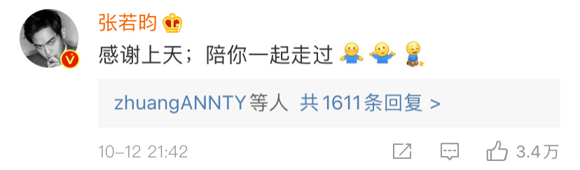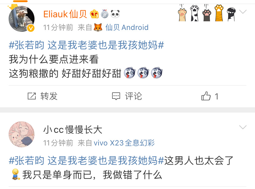 嗚哇!真的是用最平凡的文字說著最浪漫情話的張若昀啊!來看看一眾網友的評論:「你幹嘛突然這樣甜死人」、「我只是單身,又不是死了」、「而且他還盜他老婆的圖!這個男人太會了」等~
