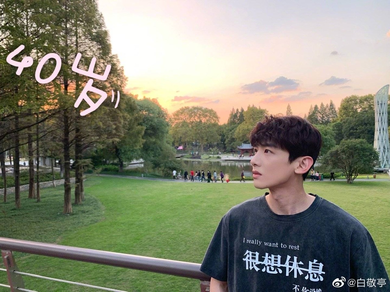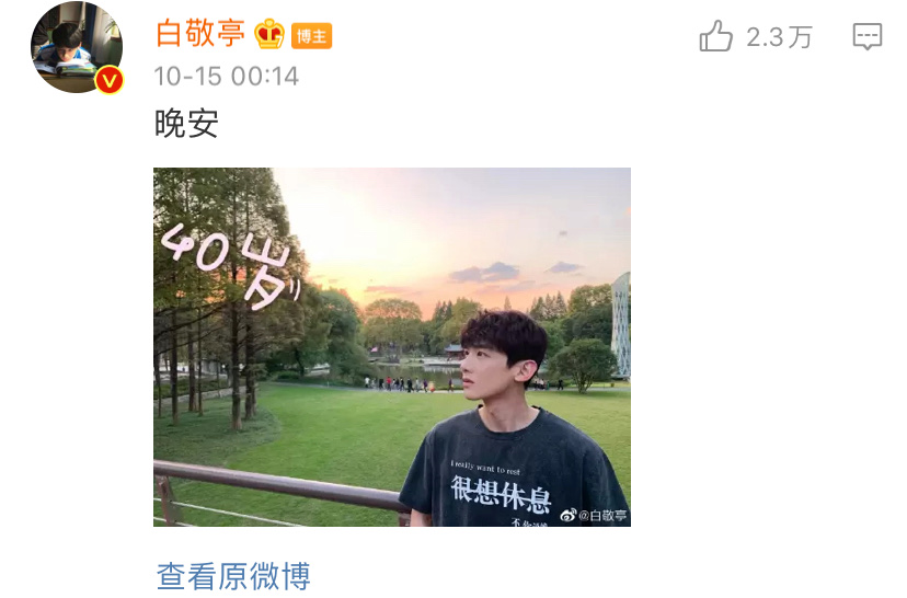 哈哈哈哈哈哈哈哈~您是在”仰望”您的40歲嗎?這還有13年才到呢!照片中白白穿的衣服也很有梗,表示自己「很想休息」了啦!