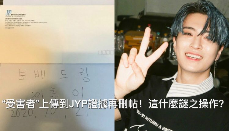 21號晚上A某上傳了下面這篇貼文,表示「今天去了JYP本社(認證)」。文中拍了印有JYP娛樂的信封,並表示:「大家好。今天去了JYP會議室公開了事實,將會調查、收集證據來了解真相的。」但隨後就刪除了這篇貼文。
