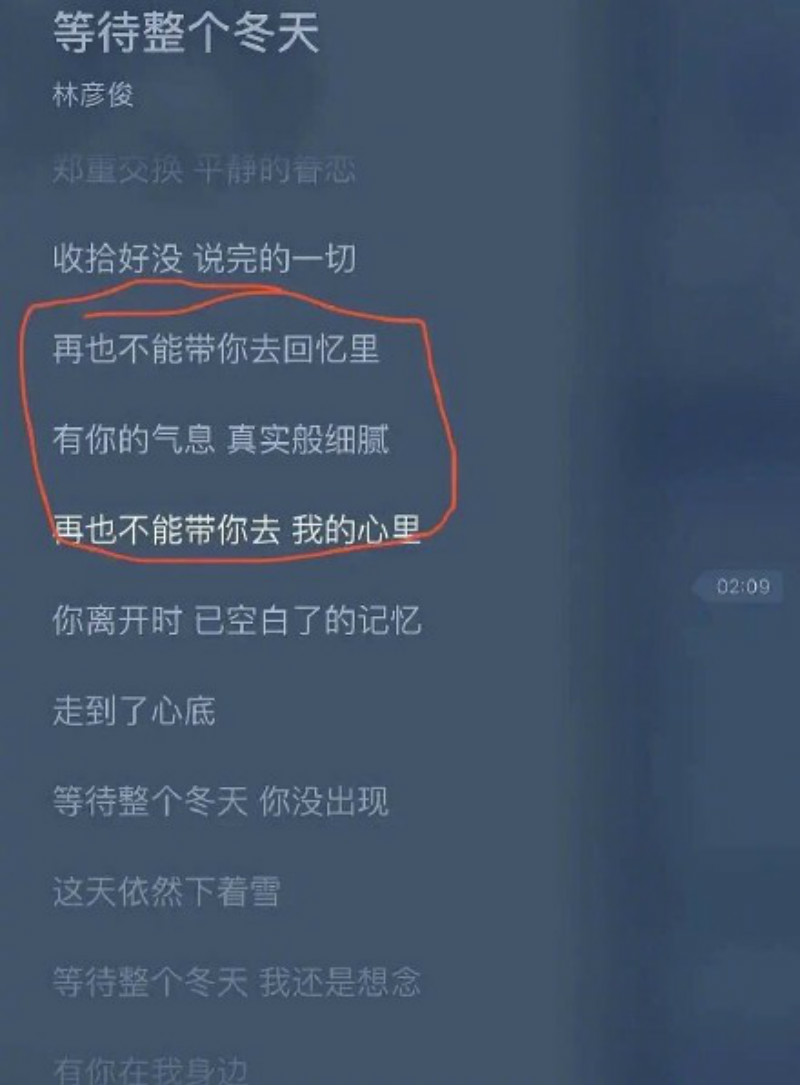 再來看看林彥俊新歌中被質疑的歌詞:「再也不能帶你去回憶裡,有你的氣息,真實般細膩,再也不能帶你去,我的心裡。」是噠~一模一樣!