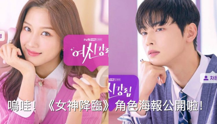 是噠!來啦!由文佳瑛和車銀優主演的漫改劇《女神降臨》,在29號下午公開了第一版的人物角色海報!tvN官方貼出的貼文中,寫道:「沒聽到哪裏有撕開漫畫出來的聲音嗎?相似率2000% 外貌角色海報公開!恢複自尊心!浪漫愛情喜劇<女神降臨>12月tvN初放送」