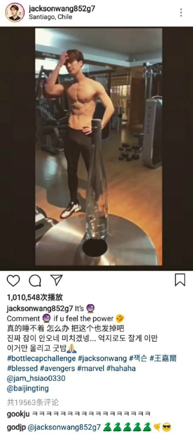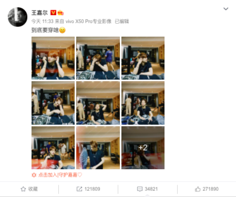 王嘉爾上傳比較“露”的雜誌封面時,小白的留言是:「為什麼不穿衣服?」