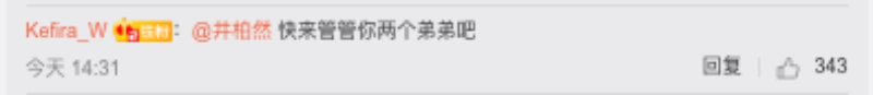 既然嘎嘎和小白玩得這麼不亦樂乎,粉絲自然不會忘記「兩百斤組合」的另一名成員井柏然,一堆艾特井柏然的留言出來啦!不是問他:「哥來(玩)耍不?」、再不然就是喊「井柏然快來管管你兩個弟弟吧!」表示井柏然躺著被cue啊!