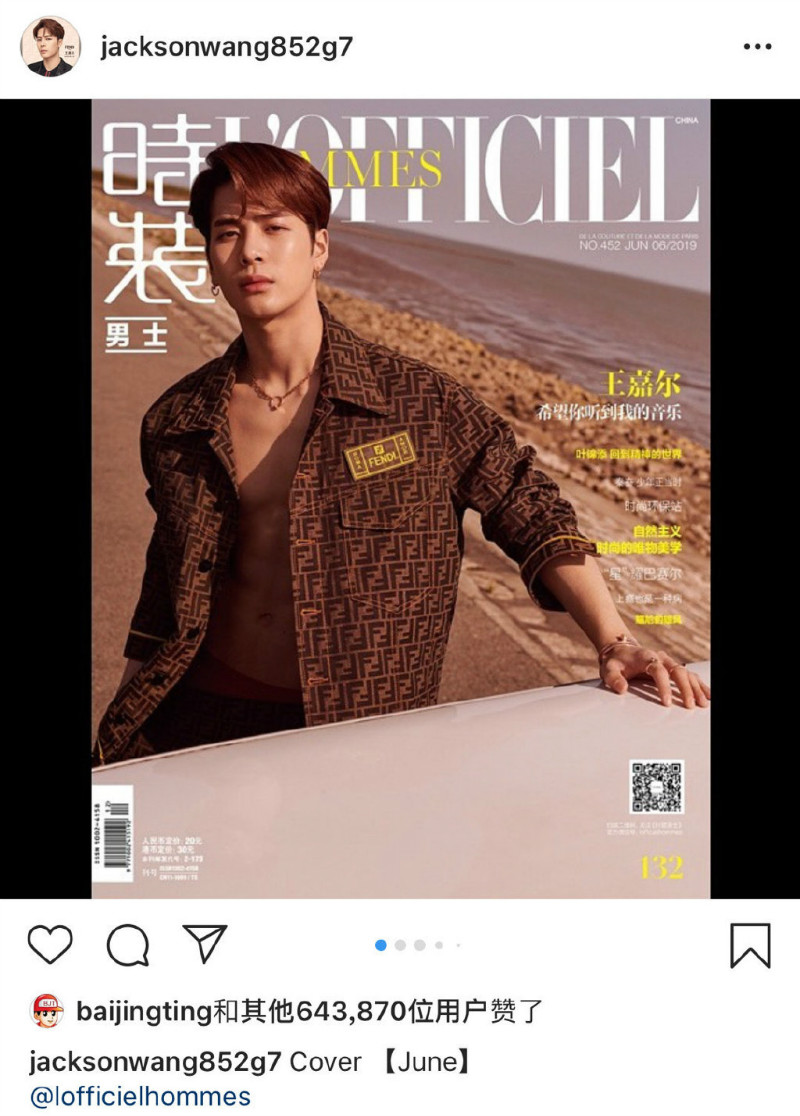 王嘉爾上傳比較“露”的雜誌封面時,小白的留言是:「為什麼不穿衣服?」