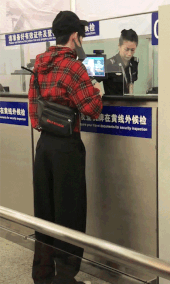 自己走過了之後,還會體貼的為身後的工作人員拉高圍繩~