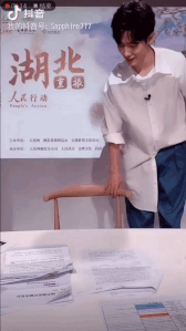 最圈小編的就是這裡~在直播時,主持人將僅有的椅子讓給了肖戰,但他並沒有馬上坐下~
