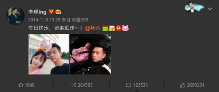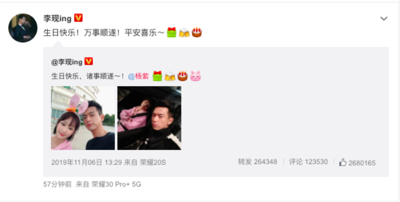 來到了第三年,李現又有新花招嚕!今年居然卡點在11點06分,也就是楊紫的出生日時間發文,轉發了去年的微博為楊紫慶生:「生日快樂!萬事順遂!平安喜樂。」
