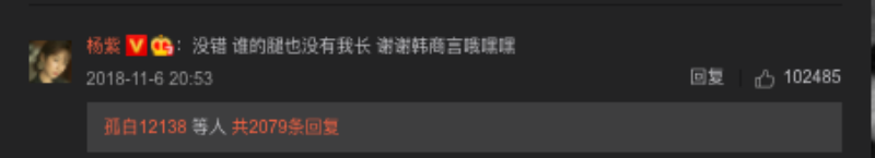 而我們楊紫也是很直率接受啦!表示:「沒錯!誰的腿也沒有我長!謝謝韓商言哦嘿嘿」
