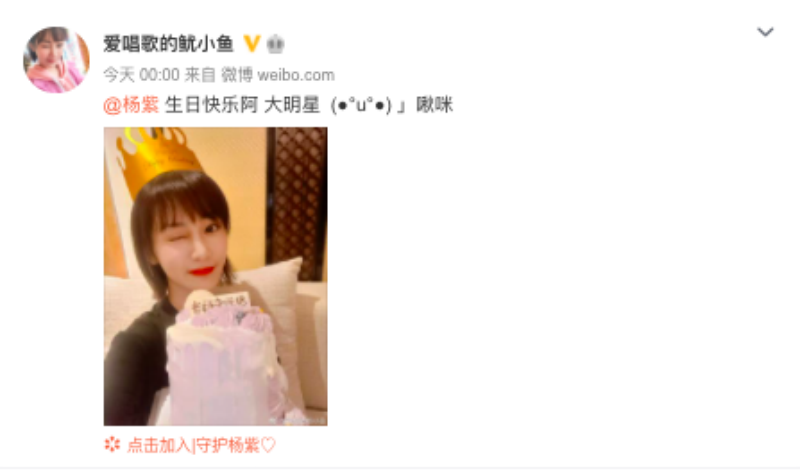 而值得一提的是,侗年的“微博”也發文祝楊紫生日快樂:「生日快樂阿大明星 (●°u°●) 」啾咪 」