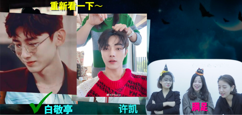 表示居然說我們的小白白敬亭像徐仁國呢!至於對手許凱,他們則覺得有點像金宇彬,同樣是恐龍相!一旦接受了這個設定,會被洗腦啊啊啊啊啊!這次兩人繼續選擇不一樣的對象,宋元看來真的被小白圈飯了,還威脅紅紅說如果白敬亭OUT她就不玩了!因為很喜歡小白這樣暖和的感覺(暖男…您確定嗎???)最後白敬亭出線!