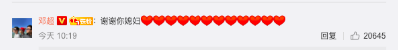 而老公鄧超也第一時間回復:「謝謝你媳婦[心][心][心][心][心][心][心][心][心][心][心][心]」~