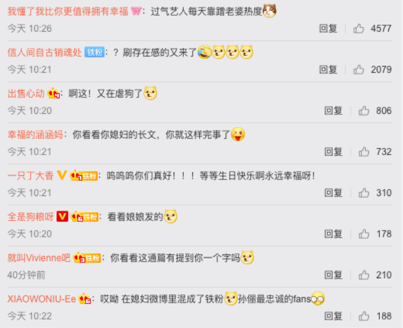 結果沒想到原本很溫馨的樓,在鄧超這個評論下卻開始歪樓啦!!哈哈哈哈~粉絲紛紛在線調侃:「過氣藝人每天靠蹭老婆熱度」、「?刷存在感的又來了」、「你看看你媳婦的長文,你就這樣完事了[擠眼]」、「看著娘娘發的」、「你看看這通篇有提到你一個字嗎」、「哎呦 在媳婦微博裏混成了鐵粉[doge]孫俪最忠誠的fans」哈哈哈哈~果然我們超哥就是最容易被粉絲懟的可愛藝人啊~