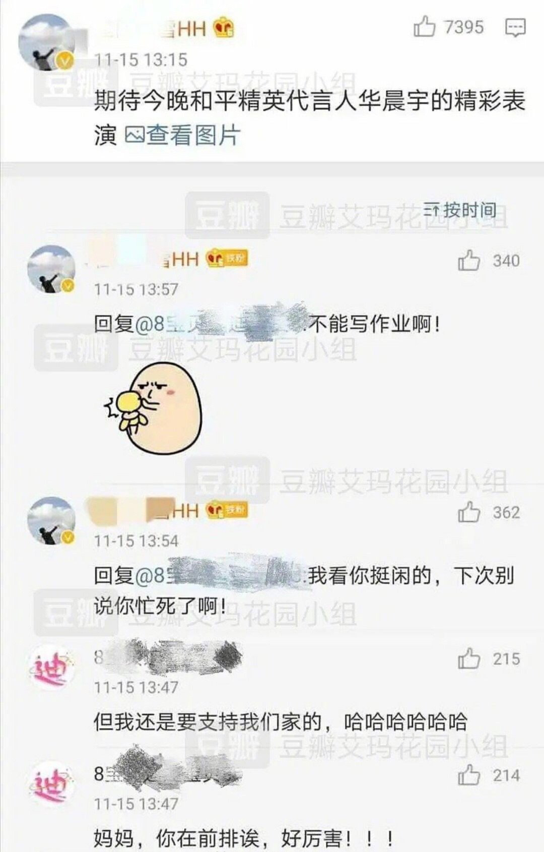 來看看發生了什麼事!有一個華晨宇粉絲留言期待花花今晚的表現,結果沒想到居然遇到了自己的女兒留言,表示媽媽好厲害,留言居然在前排,但自己還是要支持自己家的偶像,也就是熱巴!媽媽還回覆女兒表示我看你這麼閑空,下次別再說自己很忙!