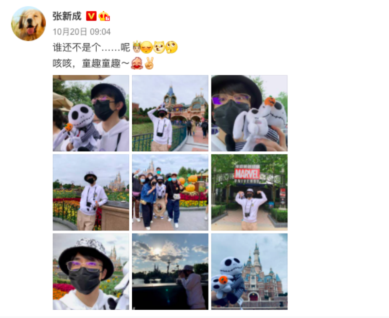 隨後網友又舉例表示張新成去迪士尼是和”嫂子“去的!問題是…看看張新成10月20日發在微博的貼文,明明都老同學一起去的啊!