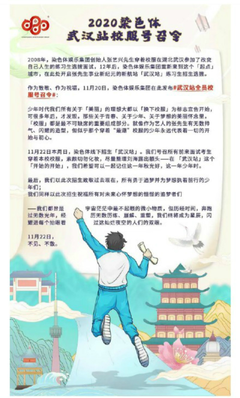 全員校服!!!我們張PD的儀式感創意度真的是100分!!!!12年前,張藝興自己穿著校服到武漢參見SM公司的面試,今天,孩子們也穿著校服參加他的選拔,繼續接力奔跑,也是很有意義!