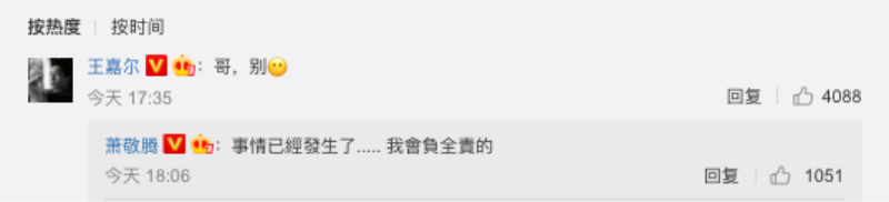 而“當選者”王嘉爾也回復了老蕭,表示:「哥,別。」但我們老蕭也不是省油的,直接回復:「事情已經發生了……我會負全責的。」哈哈哈哈哈哈哈哈哈哈哈哈哈哈哈哈哈哈哈哈哈哈哈哈~