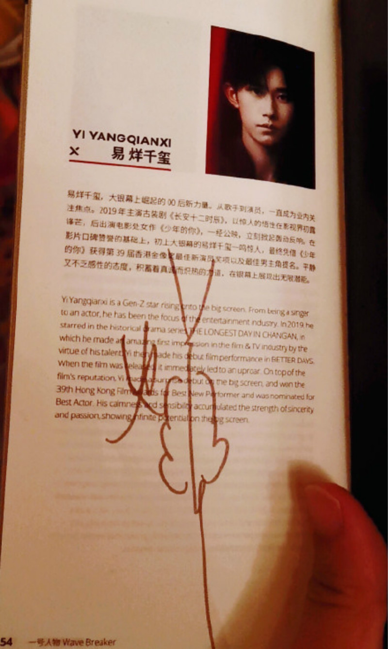 除了陳立農和李現,另一個超有創意的簽名,來自今天慶祝20歲生日的易烊千璽啦!表示易烊千璽一共走了兩次紅毯,第一次是和《少年的你》劇組一起走~