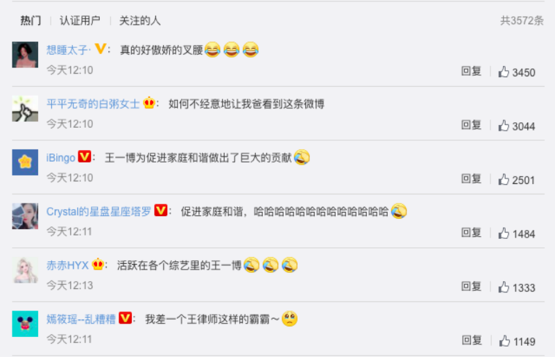 網友也紛紛在線變身檸檬精,表示:「如何不經意地讓我爸看到這條微博」、「王一博為促進家庭和諧做出了巨大的貢獻」、「促進家庭和諧,哈哈哈哈哈哈哈哈哈哈哈哈哈」、「活躍在各個綜藝裏的王一博」、「我差一個王律師這樣的霸霸~[悲傷]」