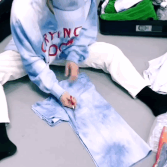 剪完之後還有小撇步,就是拉伸一番讓衣服線條更自然~